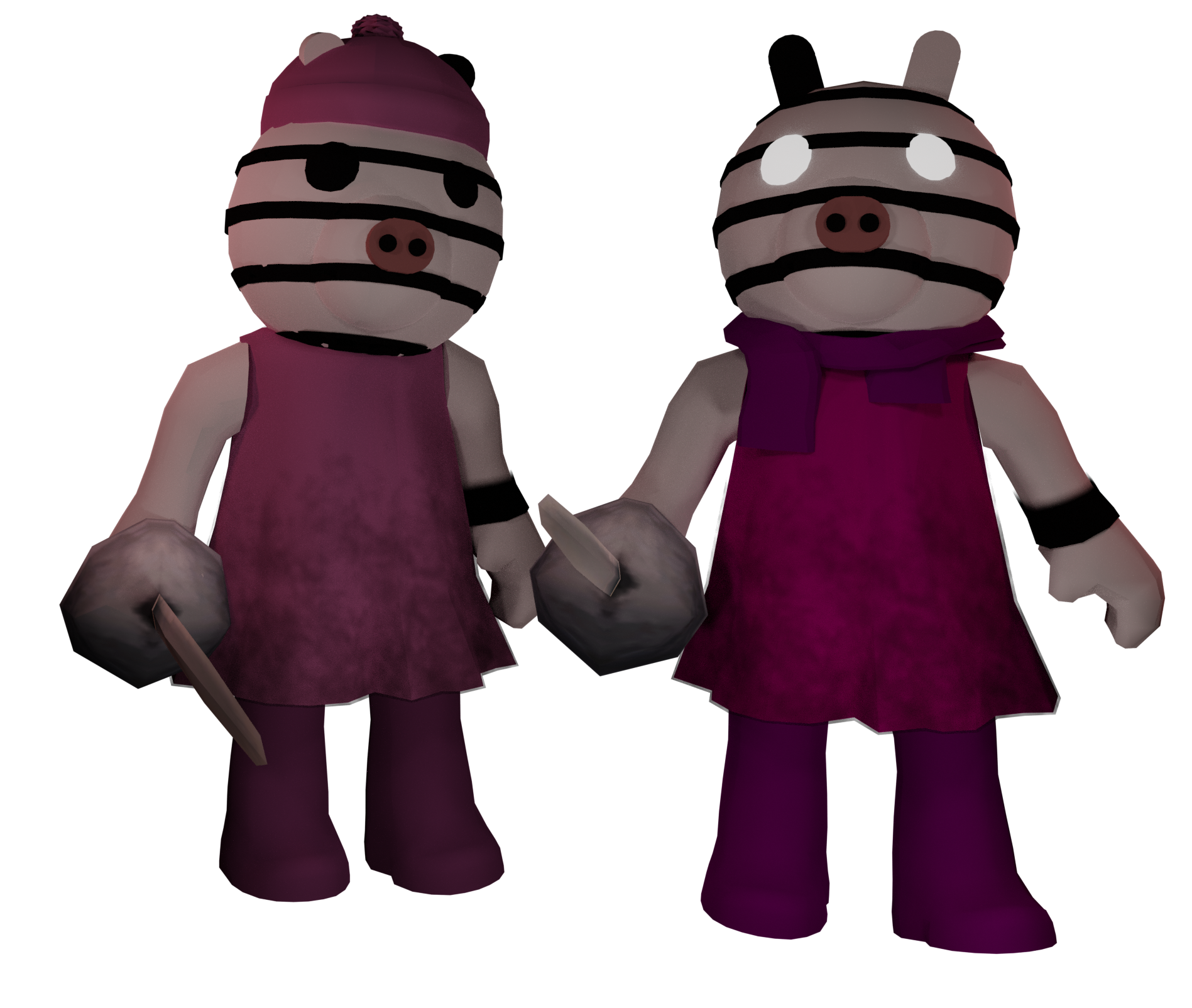 The Twins are a skin in Piggy: Book 2. They came out with the release of Distraction. They are the skin versions of Zee and Zuzy. They are also the main bot and antagonists of the aforementioned map.